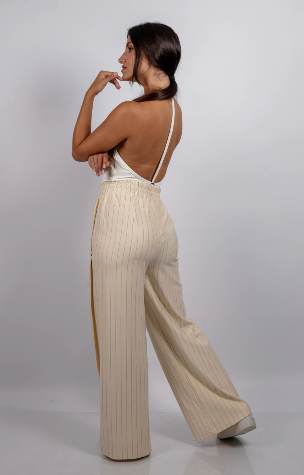 A Pantalona Rio Riscas de Giz é a escolha ideal para quem busca versatilidade e conforto. Seu tecido apresenta risca de giz em três tonalidades — off white, caqui e preta — trazendo um toque sofisticado ao look casual. O elástico na cintura garante ajuste perfeito e o caimento impecável valoriza qualquer silhueta. Perfeita para o dia a dia e para a noite, essa calça une estilo e praticidade com conforto absoluto.